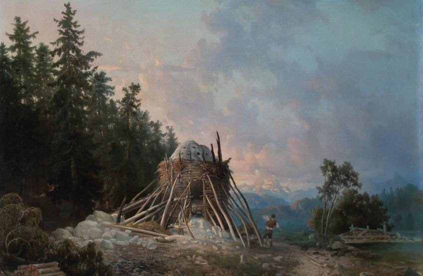 Slikarji krajinarji pa niso slikali samo narave. Del pokrajine so tudi ljudje, ki so ujeti v vsakdanja opravila, pa naj bodo to pastirji, ki pasejo svoje črede, ali otroci, ki se drsajo na zaledenelem jezeru. Kadar na upodobitvi niso bistvenega pomena in služijo le kot dopolnitev glavnega motiva, pravimo takšnim majhnim človeškim postavam štafažne . Kljub temu nam lahko veliko povedo o takratnih navadah, načinu življenja in domačih obrteh. Karingerjeva Apnenica nam tako predstavi prvotno leseno, velikemu košu podobno strukturo, ki so jo znotraj obložili z ilovico in v njej žgali apno, ki so ga v velikih količinah potrebovali v gradbeništvu in pri drugih dejavnostih.