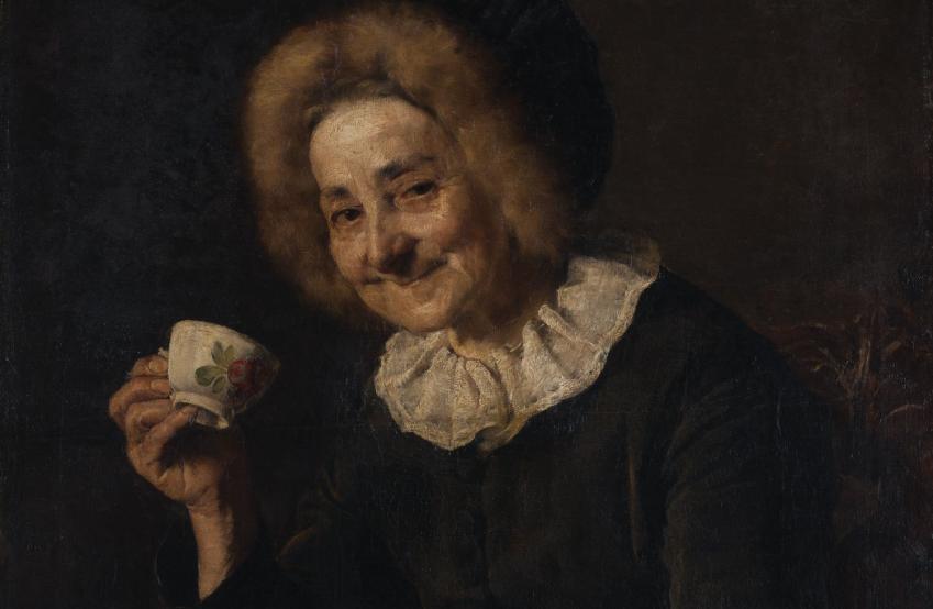 Ko gledamo »Mamico kavopivko«, se nevede poskušamo čimbolj vživeti v prizor. Najprej nas pritegnejo obraz in roke, ki so poudarjeno otipljivo naslikani. Morda se s slike oglasi dobrovoljen pozdrav … Predvsem pa podoba namiguje na omamni vonj in okus kave. Kobilčina Kofetarica torej nagovarja vseh , ki jih poznamo ljudje.